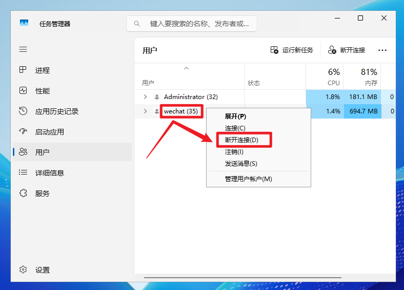 - 可以先启动虚拟机的微信,然后中断远程微信的连接,注意是中断连接,不是注销